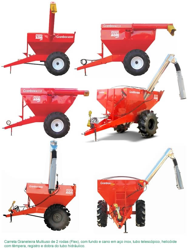 As Carretas Graneleiras Granbox AGRIMEC foram desenvolvidas com alta tecnologia e aperfeiçoadas em pleno trabalho de campo passando pelas condições mais adversas. Sua grande capacidade de trabalho e de resposta fazem delas um implemento eficiente e seguro. Cada Carreta Graneleira