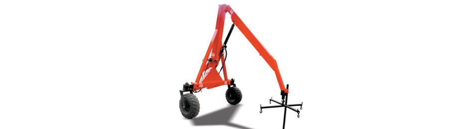 O Guincho Agrícola AGRIMEC é acionado pelo sistema hidráulico do trator, com elevação máxima de 6,0m, ângulo de giro de lança de 100o, giro livre do rodado, acoplamento traseiro e válvula de segurança do sistema hidráulico.