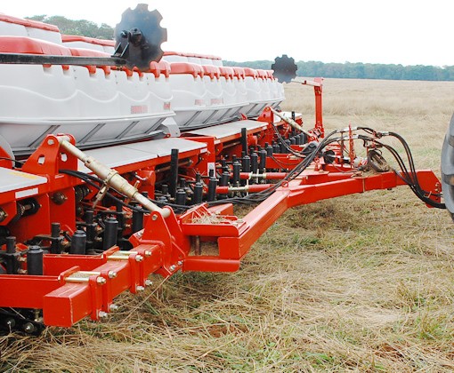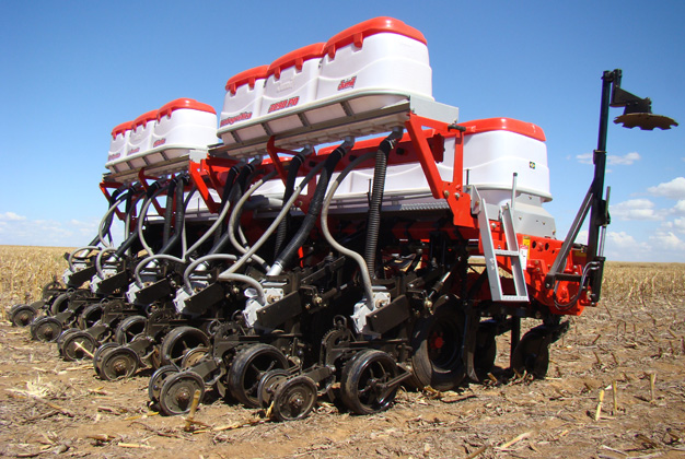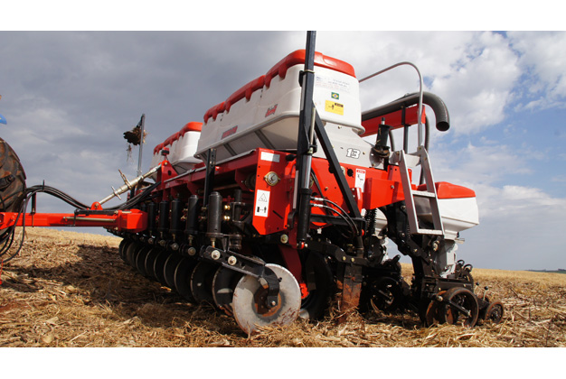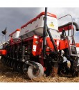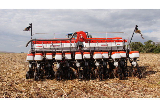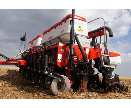Plantadora adubadora de plantio direto, com chassi monobloco para sistema de arrasto, equipado com duas, quatro ou seis rodas de acordo com o tamanho do chassi, cabeçalho escamoteável para facilitar o transporte e armazenamento, terceiro ponto para regulagem de nivelamento do implemento, sistema de câmbio para regulagens de distribuição de adubo e sementes, distribuidor de adubo com rosca sem-fim, sistema de desarme das catracas para desarme de metade da maquina, marcadores de linhas hidráulico, depósitos de adubo em polietileno e plataforma traseira com escada e corrimão. As unidades de plantio são equipadas com disco de corte frontal, com regulagem por mola de pressão e mancais blindados, unidade de adubo pivotada com disco duplo desencontrado e sulcador; unidade de semente pantográfica com sistema de transmissão por eixo cardan telescópico que aciona o sistema distribuidor de sementes mecânico(JM 3080) OU o sistema distribuidor de sementes pneumático EXACTA (sucção a vácuo)(JM 3090), disco duplo semeador desencontrado ou paralelo, controlador de profundidade com braço interno e externo, compactador flutuante em “V”, opcionais com compactador flutuante em “V” com roda dentada ou côncava.